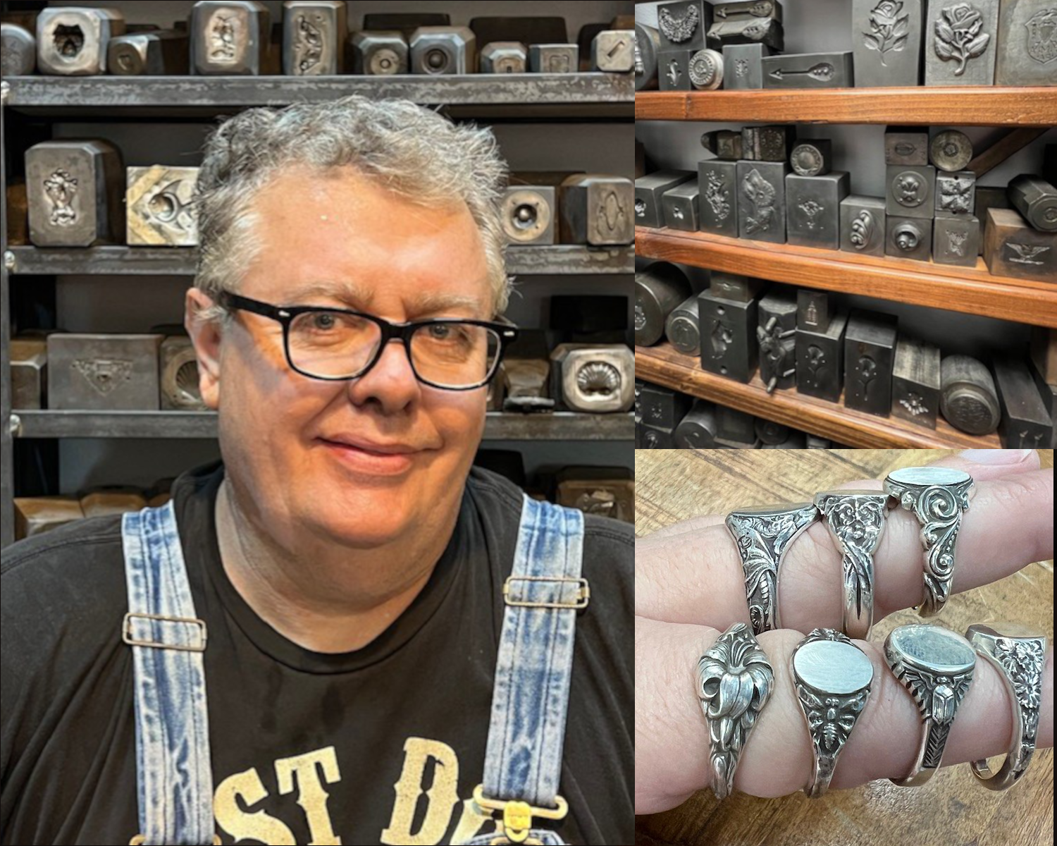 In 2016, Potter discovered the Parisi Tool & Die Company, a historic jewelry hub and die company in Providence, RI, that was set for the graveyard. He couldn’t stand to see all that history get buried, so he brought the collection back home to Tucson, AZ. Saving old jewelry hubs and dies then became his all-consuming passion. Kevin created a way to share the art of the hubs with others, thus preserving their history. Potter USA has saved designs from 74 different companies from the US, Finland, France, and Germany. Kevin continues to make fine jewelry and pieces with the hubs and dies, as well as design and sell tools to jewelers around the world.